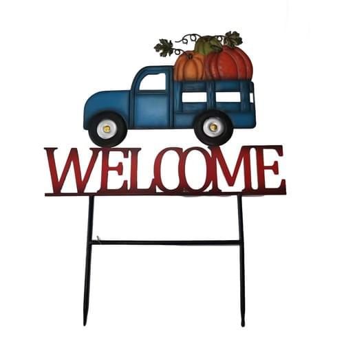 Rustic Metal Blue Pumpkin Welcome Yard Stake – Fall Harvest Garden Decor